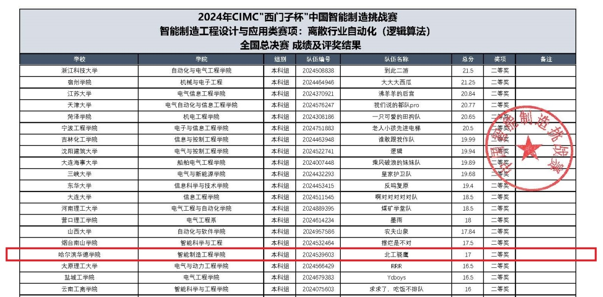 8月15日,“西门子杯”中国智能制造挑战赛全国总决赛落下帷幕,本次大赛有清华大学、哈尔滨工业大学等高校31000余组队伍90000余学生参赛。Beat365中文官方网站学子在激烈的角逐下,最终在离散行业运动控制方向获得国赛一等奖1项,二等奖1项,在离散行业自动化(逻辑算法)方向获得二等奖1项。黑龙江省只有我校和哈尔滨工业大学各获得一等奖1项。