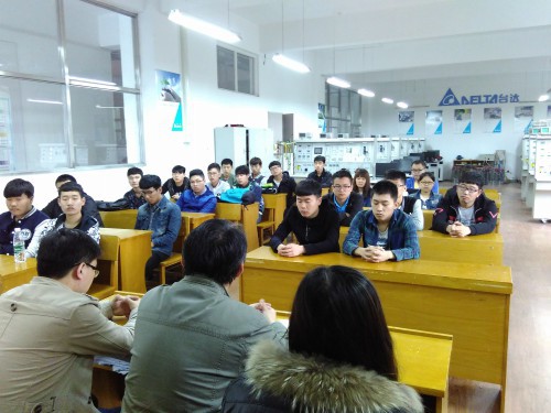 同学们也踊跃的发言,针对实验室的开放情况、实验室可利用设备情况、教师能对学生的帮助程度、历届比赛参与情况以及对现在校企合作的机器人方向做出了提问,各位专业老师都一一作了解答。总之,本次座谈会使师生双方受益匪浅,对课外专业学习和专业发展提供了新的发展思路。