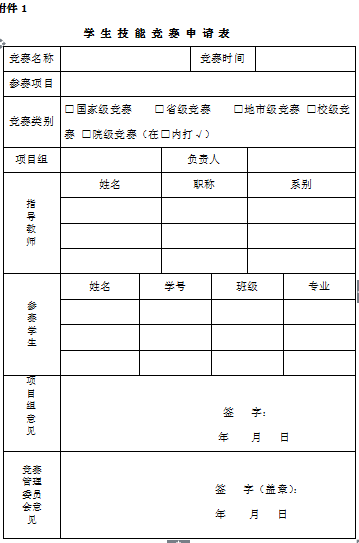 附件1:学生技能竞赛申请表