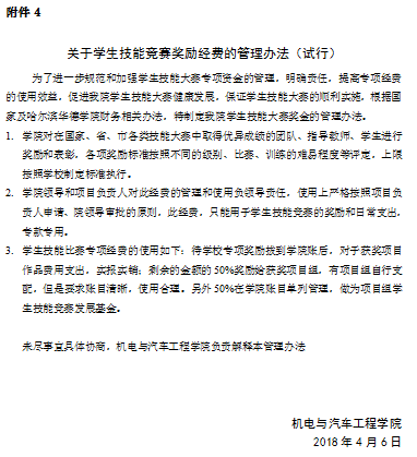 附件4:关于学生技能竞赛奖励经费的管理办法(试行)