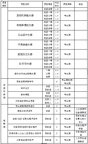 (4)学生申请免修的课程成绩按85分或良好记载,对于特别优秀的成果,经过机电与汽车工程学院技能竞赛领导小组认定,可以按95分或优秀记载。置换不及格课程的成绩按60分或及格记载。