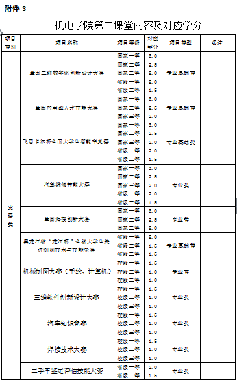 附件3:机电学院第二课堂内容及对应学分