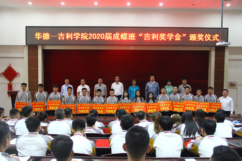 5月24日,我校华德-吉利学院在教一报告厅组织开展了华德--吉利学院成蝶班“吉利奖学金”颁奖仪式。吉利控股集团企业大学副院长刘瑜、吉利汽车集团人才经营中心技能管理部北方大区招聘经理马旭、我校副校长关晓冬、校长助理兼华德吉利学院院长李长威、华德吉利学院副院长及辅导员出席,华德--吉利学院2020届成蝶班全体成员参加此次活动。