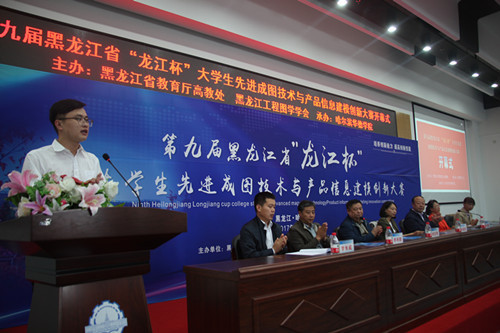 我校副校长曲伟建在开幕式上致辞。黑龙江省工程图学学会秘书长李利群讲话,他表示“龙江杯”大赛第一次走进民办高校,体现了我省创新教育覆盖式特点。本次比赛参赛学校、学生数为历届之最,学校在承办过程中组织有序,服务周到,为大赛顺利进行提供了坚实保障。闭幕式上,中国工程图学会理事、黑龙江省工程图学学会副理事长许国玉宣读获奖名单;参赛学生代表、我校1302311班肖昱同学在闭幕式上发言。