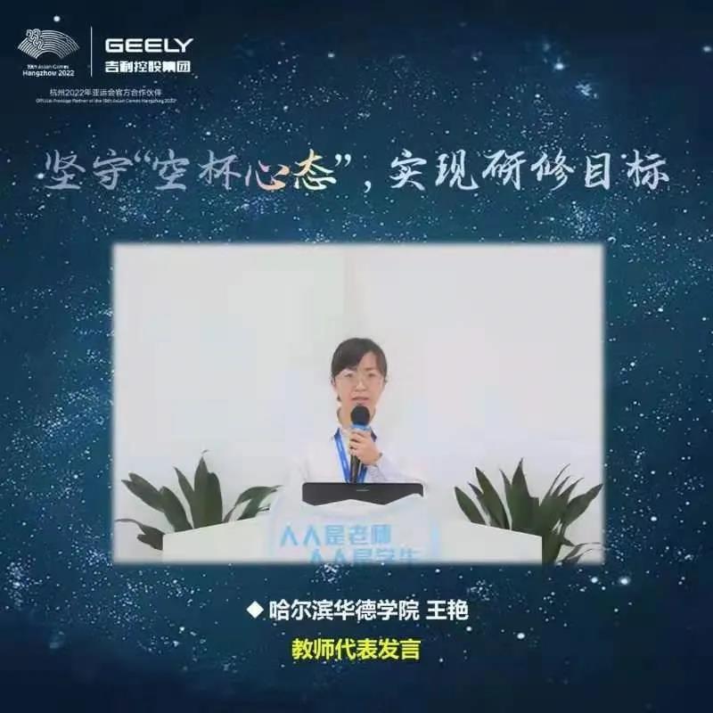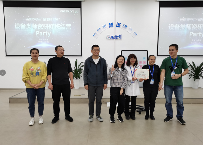 为深化产教融合工作,加速推进教育教学课程体系改革,推动企业工程技术人员、高技能人才和校企共建教师双向流动,着力打造一支高技能、高水平、高素养的校企互通的“双师型”教师队伍,吉利汽车临海校区于2020年11月14日举办了为期七天(共计48学时)的“成蝶计划”设备类师资研修班培训活动,并向全国范围内合作的优秀校企合作单位发出邀请,我校作为吉利集团长期合作的优质院校单位受邀参加。本期“成蝶计划”设备类师资研修班培训活动共有31名合作院校有三年以上工作经验的机电一体化技术等自动化专业课教师参加,我院焊接技术与工程专业王艳老师代表学校参加本次培训活动,并作为教师代表在开营典礼上发言。