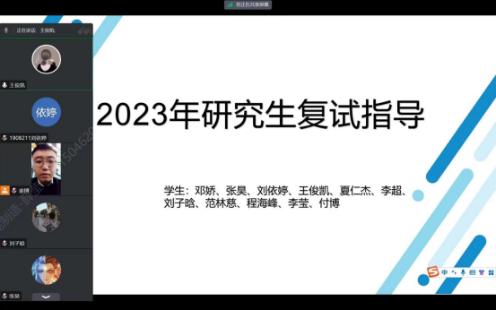 因为疫情原因,老师无法进校,在2021年秋,在校、院两级领导的指导下,电气系主任计京鸿老师带领全系教师在线上对2019级学生进行考研动员,为学生进行考研形式分析,讲解考研录取政策。逐个听取有意向考研学生的想法,分析学生自身情况并给出相应的建议。