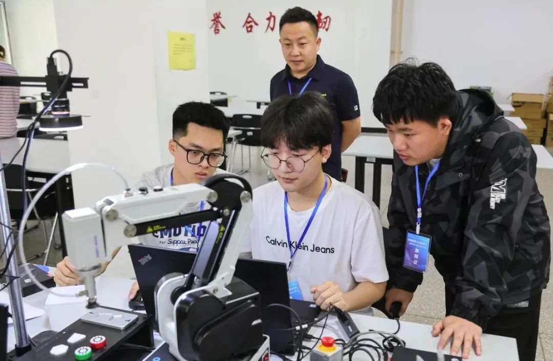 参加本次大赛的32支团队来自9所高校,以机器视觉系统创新为主题火热开展,选手们目光如炬,严谨构思,评委老师从系统硬件装配性能、系统各部分运行、工件的识别及分拣装配、工作素养及安全规则等多个维度对参赛选手进行考核打分,做到公平、公正。