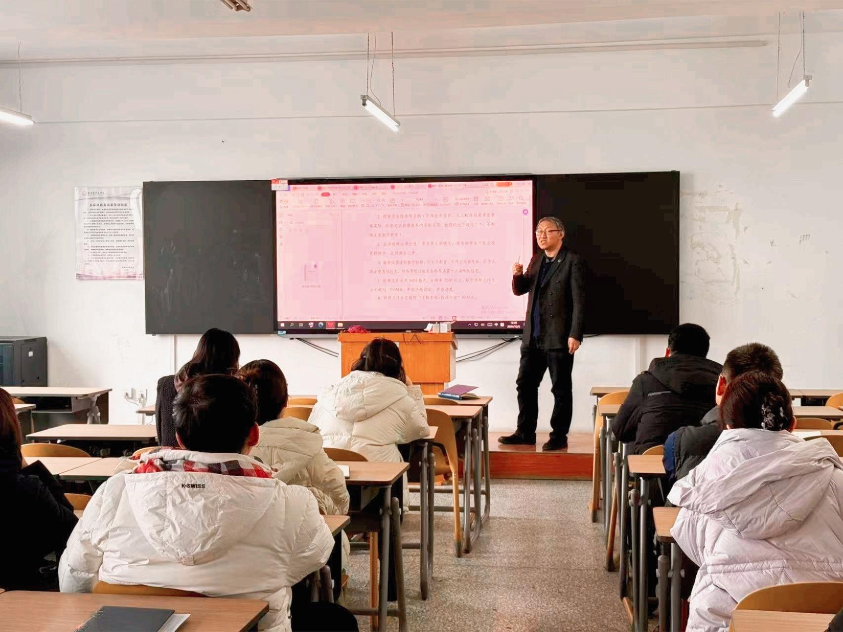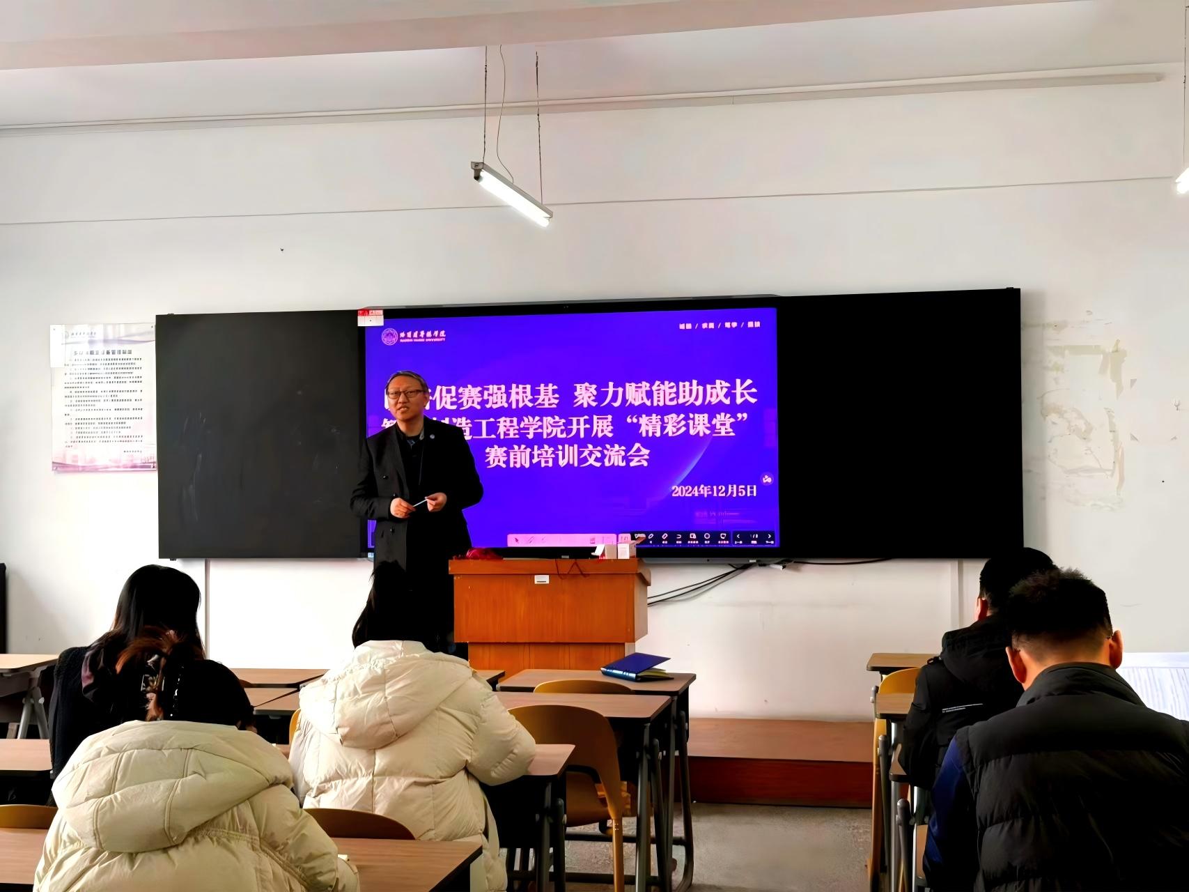 根据学校颁布的《Beat365中文官方网站2024学年“精彩课堂”大赛实施方案》,Beat365中文官方网站于11月开展了“精彩课堂”院级竞赛,25名教师参加院赛,共推荐14名教师参加校赛。为进一步提升我校教师的教学创新能力,2024年12月5日中午12:20,我院于教四408开展了“精彩课堂”赛前培训交流会,由副院长王振力主讲,为参赛教师备赛赋能,全体参赛团队参加培训。