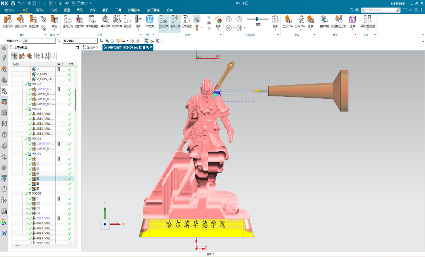 (2)加工动态多变掌控动态工艺调优:针对铠甲纹理、毛发曲面等特征,教师需定制五轴联动刀路策略,实时优化刀轴与转盘角度、主轴转速与冷却参数,规避碰撞与金属热变形风险。