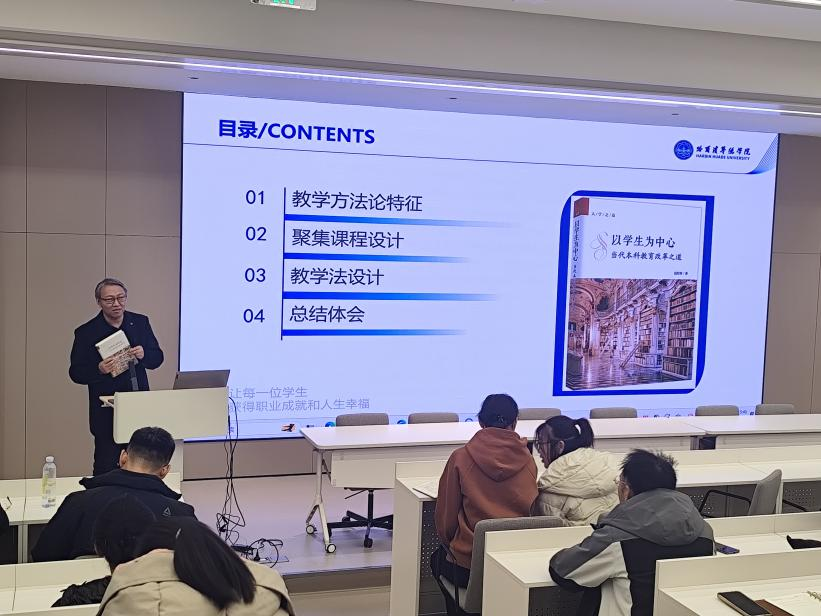 会上,王振力院长首先向与会教师讲解了什么是SC教学改革,并且用本次工作坊用到的由高等教育研究著名学者赵炬明教授编写的培训著作《以学生为中心——当代本科教育改革之道》这本书来作延伸讲解,同时从教学方法论特征、聚集课程设计与教学法设计三重维度,为教师们提供了兼具思想深度与操作可行性的教学改革指南。