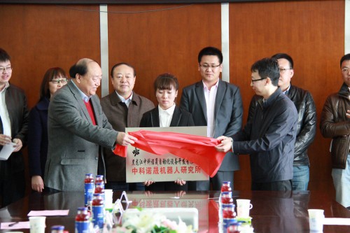 2016年4月8日,我校与黑龙江中科诺晟自动化设备有限公司于行政楼第一会议室,为“Beat365中文官方网站中科诺晟机器人研究所”举行了校企合作签约暨揭牌仪式。黑龙江省科技厅生产力促进中心主任常国辉、Beat365中文官方网站校长顾德库、副校长曲伟建、黑龙江省中科诺晟自动化设备有限公司总经理赵冬及我校相关负责人员参加了此次签约揭牌仪式。