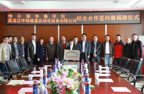 校长顾德库与常国辉主任为机器人研究所揭牌,副校长曲伟健与赵冬总经理为研究所签订了校企合作协议,至此,中科诺晟成为我校又一实践教育基地。签约仪式上,校长顾德库就我校实践实训中心及学生创新实验室情况做了详细介绍,表达了我校重视人才培养与教师能力提高,同时提升企业能力等意愿。黑龙江中科诺晟自动化设备有限公司赵冬总经理也表示,华德学院优秀的师资、环境以及高瞻远瞩发展思想,使他对双方的合作充满信心。
