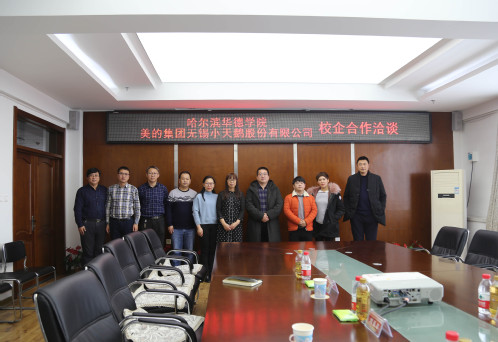 2018年12月21日,我校与美的集团无锡小天鹅股份有限公司校企合作洽谈会在第一会议室召开。美的集团人事部招聘经理许斌、管理部经理耿言涛、培训部主管赵俊梅、人事部招聘副经理李峰,学校副校长关晓冬、副校长顾鹂鸣出席会议,招生就业处就业指导中心主任张有承,机器人工程学院常务副院长刘显忠、副院长王振力,副院长刘张、行政秘书朱雨婷参加会议。