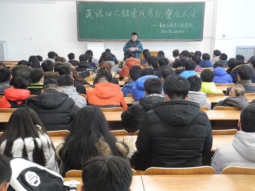 会上,付洪涛副院长宣读了考试要求和考场纪律,并着重解读了《中华人民共和国刑法》第284条新增条款,就组织考试作弊、考试实施作弊及考试期间为他人提供和出售考试试题、答案及作弊应负的刑事责任做了说明。他重申了全国外语四六级考试、学期末考试及预警考试的诚信教育问题,提醒学生做好考前准备。他希望同学们发挥自己实力,诚信作答,杜绝作弊;充分发挥,取得理想成绩。