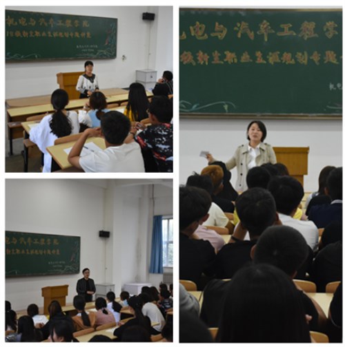 为帮助学院2018级新生更快更好的适应大学生活,制定大学目标,有计划有步骤的完成学业,机电与汽车工程学院于9月14日下午分别在第二教学楼阶梯101、102教室开展2018级新生职业生涯规划专题讲座。职业技术学院院长助理张碧莹、机电学院副院长周启新出席,职业技术学院及机电学院相关教师参加会议,学院全体2018级新生聆听了专题讲座。