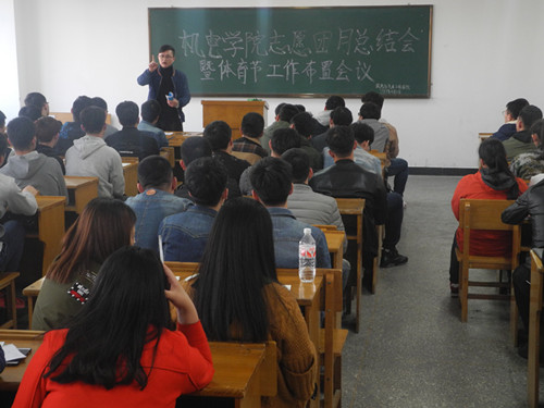 4月11日,机电与汽车工程学院在第四教学楼407教室召开学院志愿团月总结会暨体育节工作布置会,学院志愿团指导教师杨志承主持,学院全体志愿团成员参加会议。
