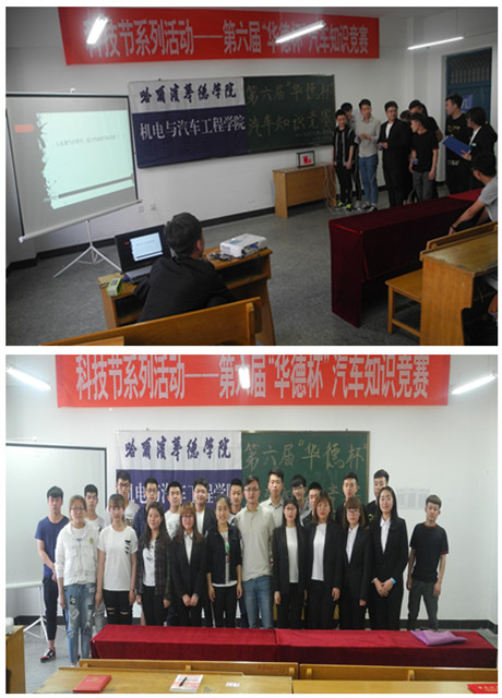 5月11日,机电与汽车工程学院在第四教学楼409教室开展第六届“华德杯”汽车知识竞赛,学院团总支负责人杨志承、交通运输专业教师曲文出席,社团联合会主席张建宇同学、汽车系部分学生代表参加了此次活动。
