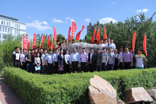 大会结束后,校院领导与校友来到思源广场参加了机电学院校友、2017届毕业生敬献校训石的揭幕仪式。仪式上2017届毕业生代表马晓鑫上台发言,现就业于浙江吉利控股集团的2016届校友王会、2017届校友马晓鑫共同为母校敬献锦旗。校长与校友代表郭洪超、马晓鑫等人共同为感恩石揭幕并合影留念。