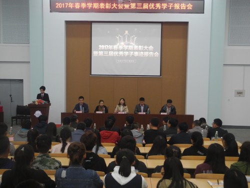 为表彰先进,激励后来,我校机电与汽车工程学院于9月28日晚在第二教学楼学生文化活动中心组织召开2017年春季学期表彰大会暨第三届优秀学子事迹报告会。副校长邓维娜、校长助理兼机电学院院长李长威、学生工作处处长康春丽、机电学院副院长吴柏宇、付洪涛出席,学院各系教师代表、全体辅导员参加,2015级、2016级、2017级各小班学生代表聆听报告会。