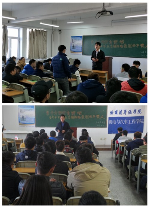 赵亮校友在校期间担任班级班长,校园文化建设大学生志愿团秘书长,曾荣获国家励志奖学金、黑龙江省三好学生,优秀学生干部、优秀毕业生等荣誉称号。机电学院副院长付洪涛,学院校友联络员栾庆波出席,130余名在校学子聆听讲座。