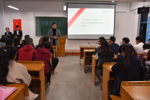 最后杨志承老师做总结讲话,他讲到,课前五分钟演讲是我校最早建立的校园品牌之一,建立的初心便是为了让学生锻炼语言表达能力,克服语言障碍,同学们要把握机会,在这个平台上充分锻炼自己,通过演讲观摩,与会学生要思考如何通过演讲带动和加强班风、学风建设,将我校课前五分钟演讲这一品牌上层次,上水平。