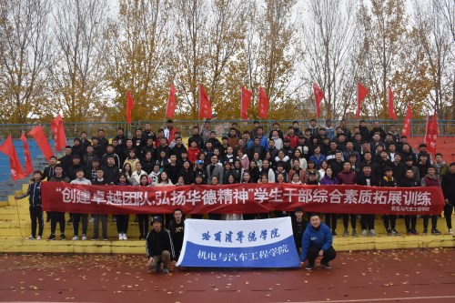 为积极响应《学生干部自律公约》倡议,打造一支素质过硬,胸怀理想、作风扎实的学生骨干队伍。机电与汽车工程学院于10月27日在体育场开展了主题为“创建卓越团队,弘扬华德精神”学生干部综合素质拓展训练。团总支书记杨志承及学院第十五届学生会全体学生干部出席活动。活动由杨志承老师主持。