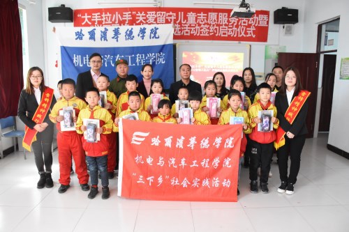 为积极响应校团委号召,全面落实《关于开展我校2018年寒假社会实践活动的通知》,327日,机电与汽车工程学院团总支赴绥化市青冈镇中心小学校开展“大手拉小手”关爱留守儿童志愿服务活动暨“学习雷锋小标兵”评选活动签约启动仪式。青冈镇中心小学校校长王玉秋及学校教师、我校机电学院党总支书记王郁黎、团总支书记杨志承及学院六名团员青年代表、40名留守儿童参加此次活动。