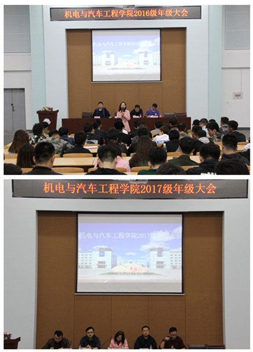 根据校院整体工作安排,结合当前学生工作重点,机电与汽车工程学院于4月23日在第二教楼学生文化活动中心分年级召开全体在校生年级大会,学院党总支书记王郁黎、副院长周启新分别出席,会议按照年级分三个场次进行。