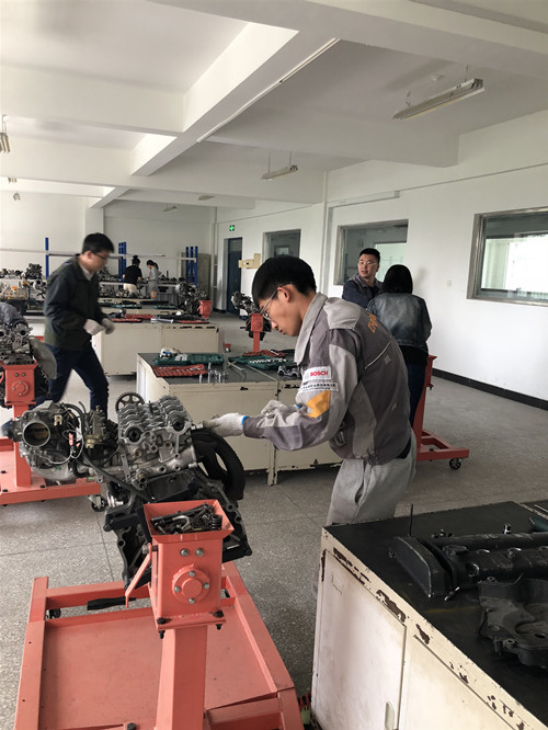 本次活动的不同之处是研讨地点不再局限于办公室和会议室,而是选在了第七教学楼发动机实验室,研讨内容不再局限于理论知识讨论而是锻炼教师的实训动手能力。在发动机的实验室中,教师2至3人为一组,每组一台发动机,按照发动机实验课程要求对发动机分解和装配。整个过程中,教师重新熟悉发动机常用的拆装工具和仪器设备的使用;熟悉发动机拆装、调整和各系统主要零部件的正确拆装;掌握发动机的基本构造和基本原理;了解发动机各组成系统的结构与工作原理。