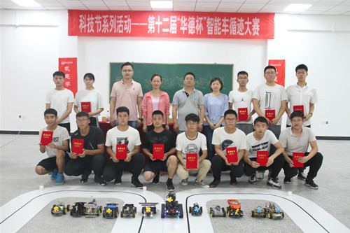 6月26日,机电与汽车工程学院在第七教学楼317教室,举办科技节系列活动--第十二届“华德杯”智能车循迹大赛。校长助理兼机电与汽车工程学院院长李长威、学院党总支书记王郁黎、副院长周启新、院长助理宁士君、团总支书记杨志承、辅导员王国清出席本次活动。本次大赛经前期96人中层层筛选,共36人参加本次比赛分为12个小组进行抽签对抗赛。