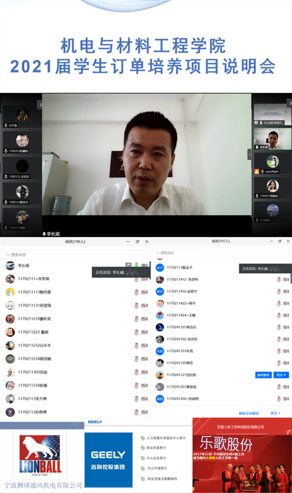 为进一步推进我院首届“雏鹰计划”学风建设工程关于毕业生精准就业的工作要求,帮助学生树立正确的就业观,加强对学生求职就业中的指导与帮助。6月12日下午,机电学院通过“腾讯会议”平台召开2021届学生订单培养项目说明会,校长助理兼机电与材料工程学院院长李长威、学院党总支书记王郁黎以及全体2021届毕业生参会。会议由2021届毕业生辅导员金文雯主持。
