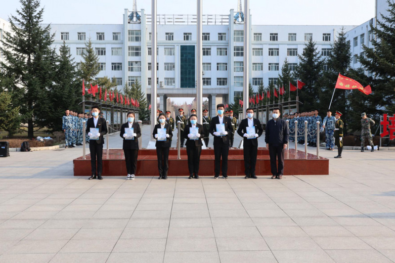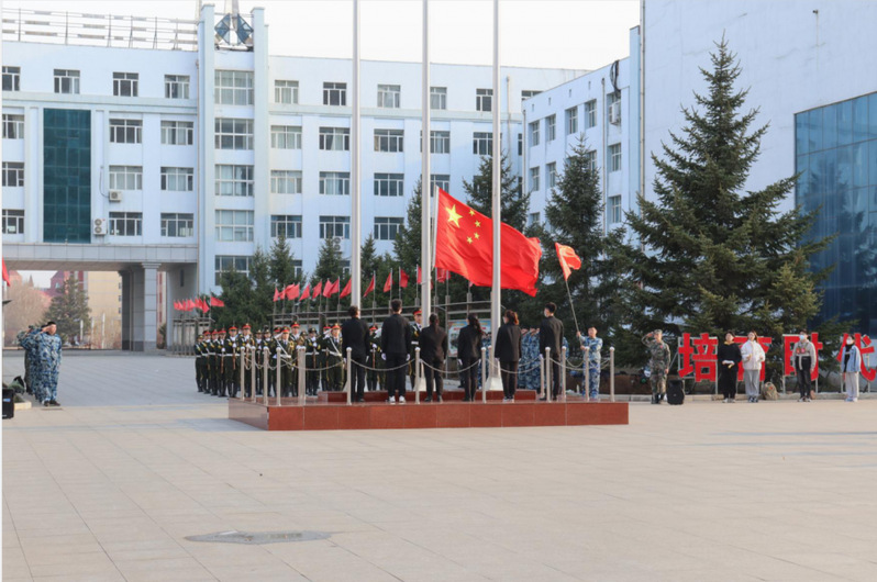 2021年4月12日清晨,伴随着庄严的国歌声,机电与材料工程学院举行升旗仪式。Beat365中文官方网站校长助理兼机电与材料工程学院院长李长威、党总支书记王郁黎、团总支书记杨志承、全体辅导员及机电学院全体在校生出席升旗仪式。