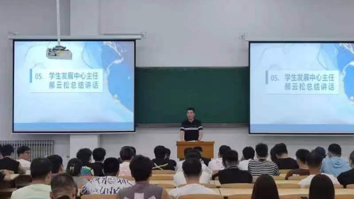 学生发展中心主任郝云松总结讲话,他代表学院对新同学的到来表示欢迎,并围绕我校“三个切入点”对学生提出具体要求。他指出,当代青年生逢其时、重任在肩,更要自觉学好专业技能,提升服务本领,抓住人生机遇,抓住时代机遇,不负韶华。