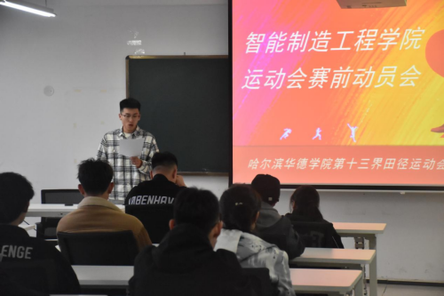 随后,郑义老师向同学们讲述了自己参加体育比赛时的经历感受,与同学们分享了参赛经验,鼓励学生们在体育比赛中要勇敢拼搏、团结协作、共同奋战。同时他提醒同学们在比赛中要恪守安全底线,加强自我保护,关注自身身体机能的变化。最后他希望同学们能够在比赛中展现出智能学院的卓越风采,走好强院之路,共铸智能学院的荣光。