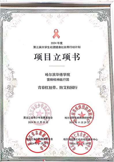我校雷锋精神践行团应邀参加2024年度第三届“哈尔滨大学生社团健康红丝带行动计划”启动仪式
