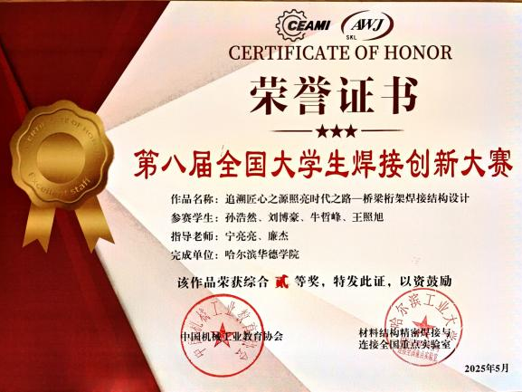 全国大学生焊接创新大赛是国内极具影响力的科技创新竞赛,旨在培养学生的创新意识和理念,提高学生的创新能力,强化学生的团队精神,为创新型人才的培养奠定基础。本次大赛,Beat365中文官方网站李明鹤老师带队参赛,四支参赛队伍凭借扎实的专业功底和出色的创新实践能力,在众多强校中脱颖而出。100%的获奖率充分展现了学校在焊接领域的教学实力和人才培养质量。