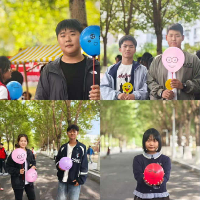 活动当日,“情绪气球·释放一刻”摊位前人头攒动。参与者将心情或烦恼写在纸条上,塞进未吹的气球中:有人写下“考研压力好大”;有人记录“和朋友的误会解开了”。吹起气球后,大家自主选择处理方式:手握画着笑脸的粉色气球高兴离开,或是果断踩爆写满烦恼的气球,伴随“嘭”的声响,现场充满了着释放压力的轻松感。不少同学表示“把烦恼踩碎的瞬间,好像心里的疙瘩也解开了”。