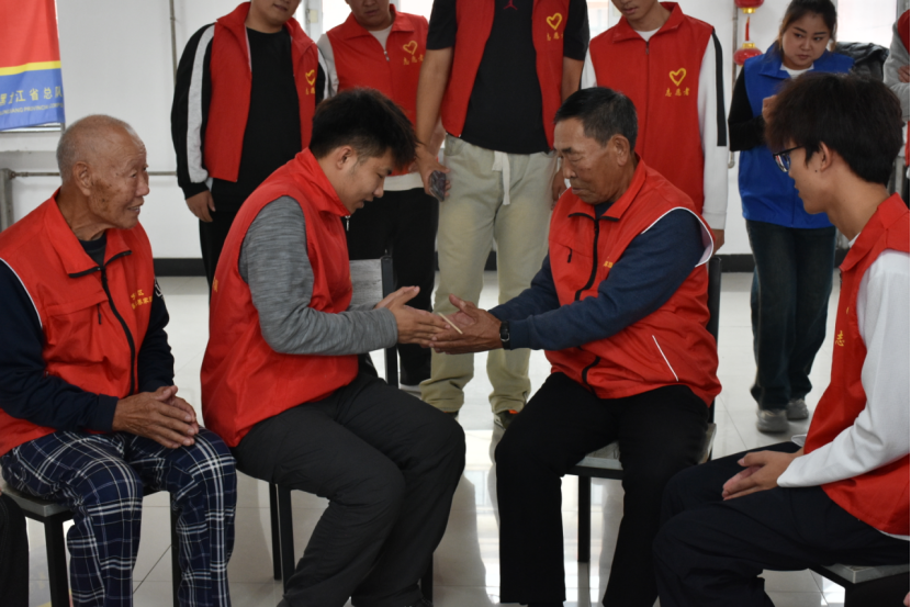 为系统构建老年人精神文化服务体系,创新推动文化养老模式向纵深发展,10月29日上午,我院雷锋精神践行团与黑龙江省医疗应急救援总队一同深入呼兰区乾海基康养家园举办了以“重阳暖心,情系老人”为核心的主题公益活动。通过打造多层次、宽领域、多元化的文化服务矩阵,志愿者们以专业热忱与人文关怀,赢得了老人们的阵阵掌声与真诚赞誉。