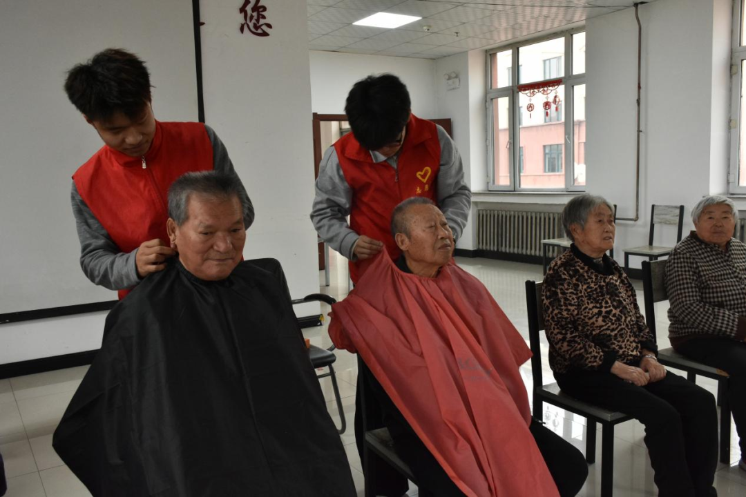 志愿者们以梳剪传情,学生们轻柔地梳理银丝,剪刀在指尖轻盈舞动,当最后一片碎发落下,镜中映出的不仅是整齐的发型,更是被温柔以待的尊严与体面。这份用心,让简单的理发成为照进暮年的一束光,在细微处点亮了生命的华彩。活动的尾声洋溢着甜蜜的温馨,志愿者们端上精心准备的节日蛋糕,与长者们共同分享这份寓意美好的甜蜜。阳光映照着老人们洋溢着幸福的笑脸,现场在欢声笑语中化作一片温暖的海洋。
