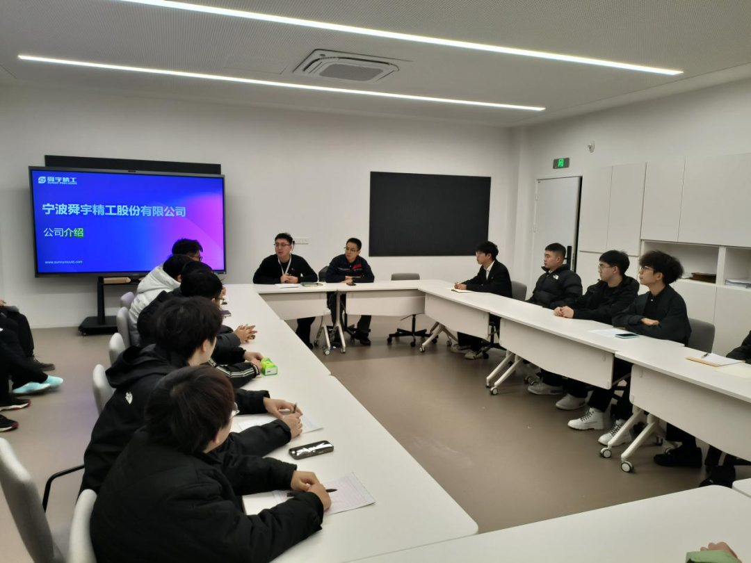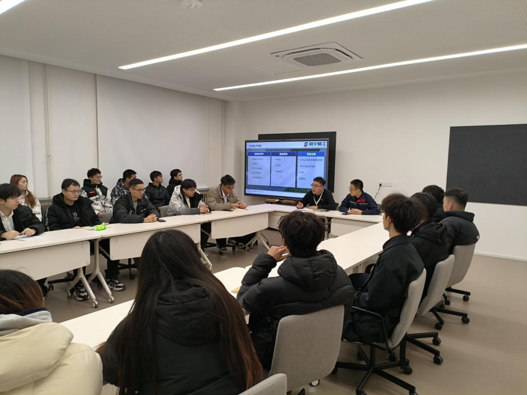 活动中,李潮勇老师带领学子走进舜宇精工股份有限公司的创新世界。作为国内最大的综合类光电企业舜宇集团旗下极具潜力的子公司,舜宇精工凭借技术基因和前瞻性布局在国内诸多城市设立分部,并在海外建设基地,已形成覆盖汽车产业集群的服务网络,核心业务涵盖汽车内饰功能件、智能汽车核心部件、AGV机器人及高端设备三大板块,并直接服务于比亚迪、一汽红旗、奔驰、宝马等国内外顶级品牌,彰显其产品品质与实力。在人才发展方面,该公司针对应届毕业生建立“承晖计划”,高度重视人才培养,支持员工终身学习,以高薪资和多元化的福利,配备标准化的生活设施,帮助大学生完成校园人到职业人的转型。
