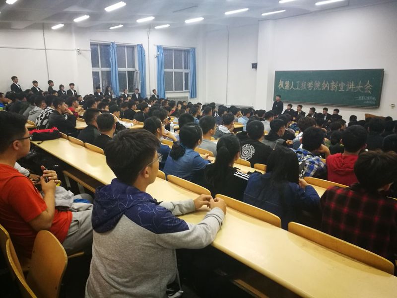 为提供给17级新同学充分体会学院丰富多彩的乐趣,展示自身才华,不断的提升成长自己的机会。机器人工程学院于2017年9月20日下午在教二101召开了机器人工程学院纳新宣讲大会,参加本次会议的有机器人工程学院学生会副部级以上全体成员,科技类社团各位社长及大一全体学生。本次会议由学生会办公室主任王显宇主持