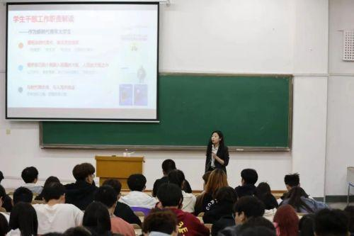 最后,金文雯老师围绕同心,同向,同行的主题从四个方面讲解,告诉同学们如何做一名有情怀的学生干部。做一名有家国情怀的学生干部,同心向党,同向而生,学生干部要自觉加强政治历练,增强政治自制力,做马克思主义的坚定信仰者和忠实践行者。做扎根学生群体的学生干部,学生干部要驻扎在学生群体,反映群众的呼声,凝聚力量脚踏实地,切实高效做好每一件事。做一个“三有三实”人才,学生干部要自觉培养自己做一个有思想,有能力,有担当,实践,实用,实干的“三有三实”人才。