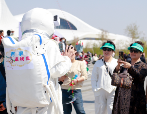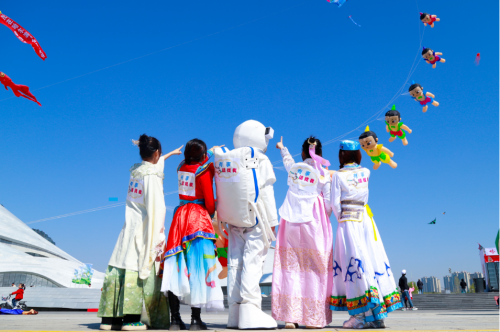 身穿各类中国传统民族服装的华德青年志愿者们忙碌地穿梭在活动现场中,他们着民族服饰、列队整齐,载歌载舞,迎接市民游客献上诚挚的祝福,用最美姿态与市民游客彼此交换眼中风景,绘成2024哈尔滨风筝音乐汇靓丽风景线,吸引众多市民游客驻足观看、合影留念。