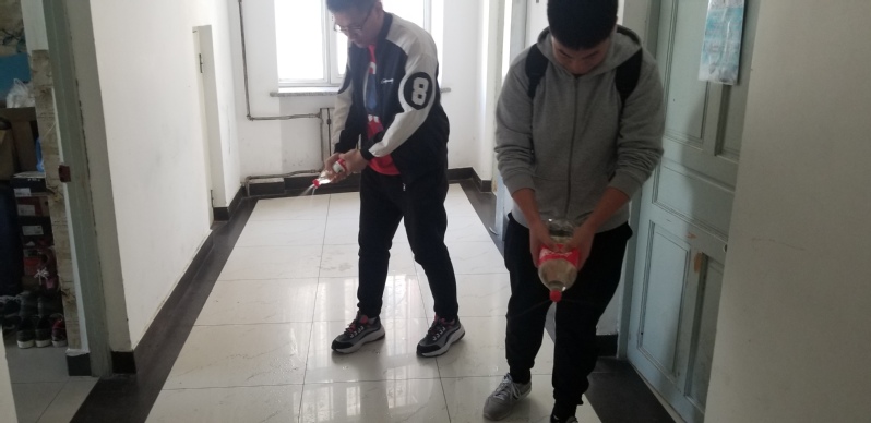 志愿者们利用午休时间对各个寝室进行全方位消毒,消毒过程中,志愿者们分工明确,相互配合,有礼貌地敲开每一间宿舍门,耐心地为同学们讲解本次的消毒活动的意义,并叮嘱大家要注意开窗通风,确保通风时间,及时打扫宿舍卫生,减少细菌的滋生。消毒活动在同学们的积极配合下进行的井井有条,直至顺利结束,取得实效。