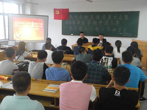 8月31日,我院于第四教学楼410教室召开全体党员大会暨2016年秋季学期评建工作党员服务小组工作动员会,学院党总支副书记付洪涛、党总支组织委员赵强及全体党员参加会议。