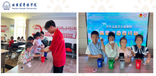 七彩假日,花样童年。为进一步宣传垃圾分类的重要意义,在青少年群体中树立保护环境的意识。实践团队开展了垃圾分类宣传教育。团队成员借助ppt,分别从垃圾分类现状、如何分辨垃圾分类?如何有效利用、如何形成良好的生活习惯四个方面展开课程的解说。随后,团队成员还通过 《垃圾分类环保歌》与孩子们进行互动,并现场提问“卫生间用纸”、“污损垃圾袋”、“头发”、“烟蒂”等是什么垃圾,孩子们积极参与问答、抢答,课堂氛围和谐热烈。