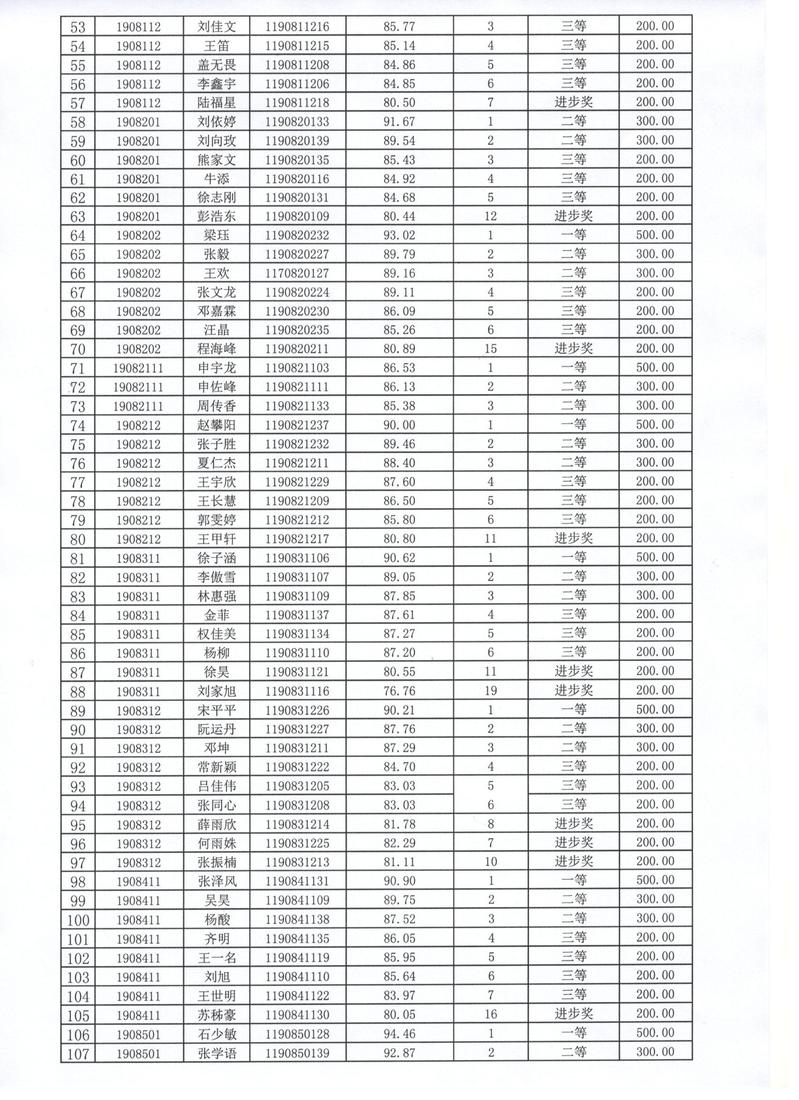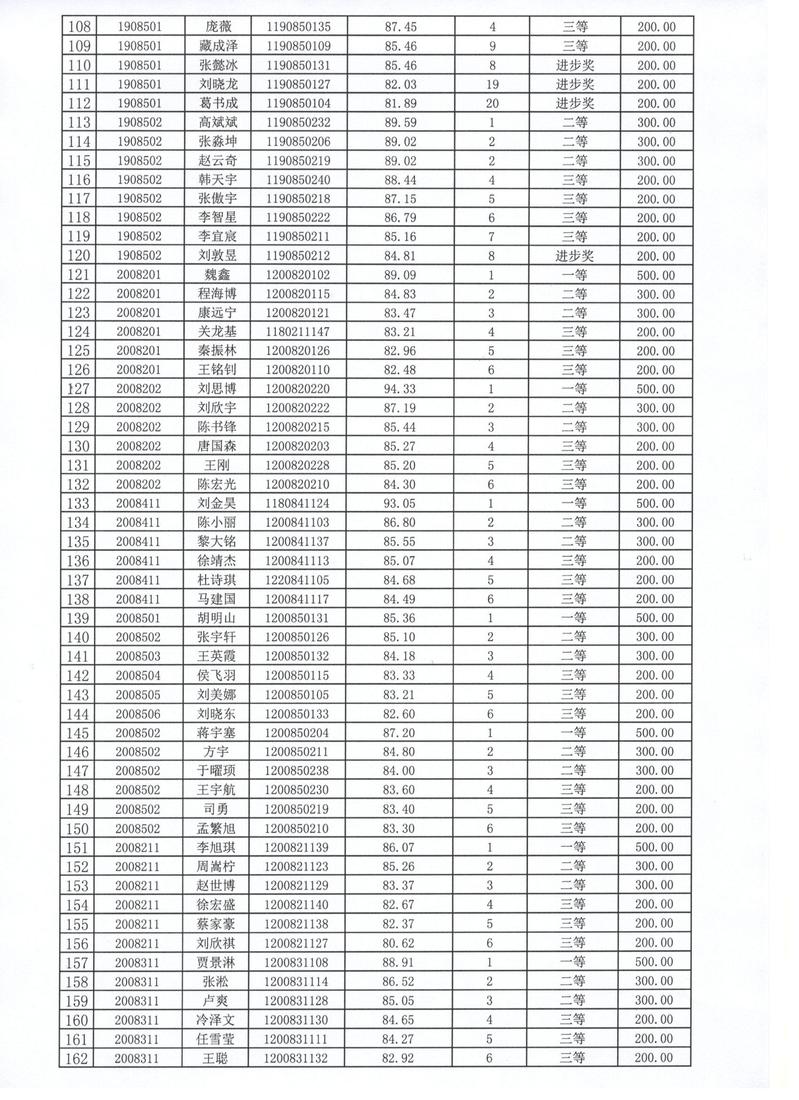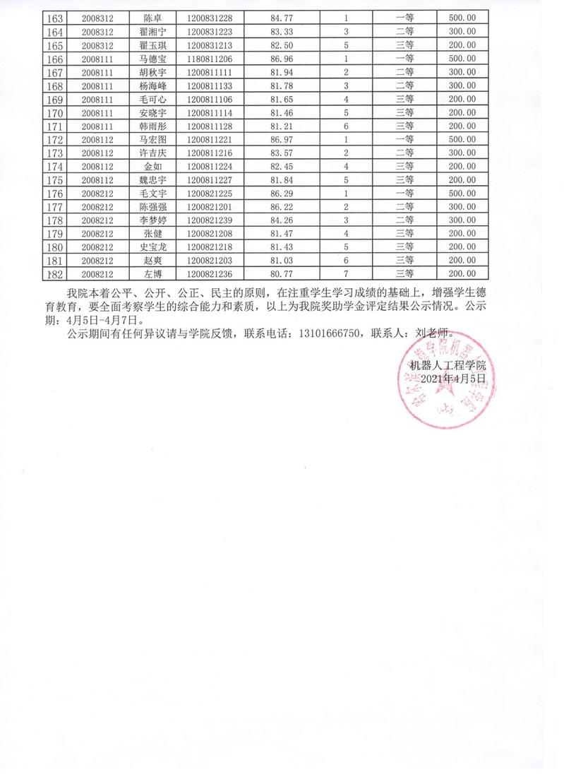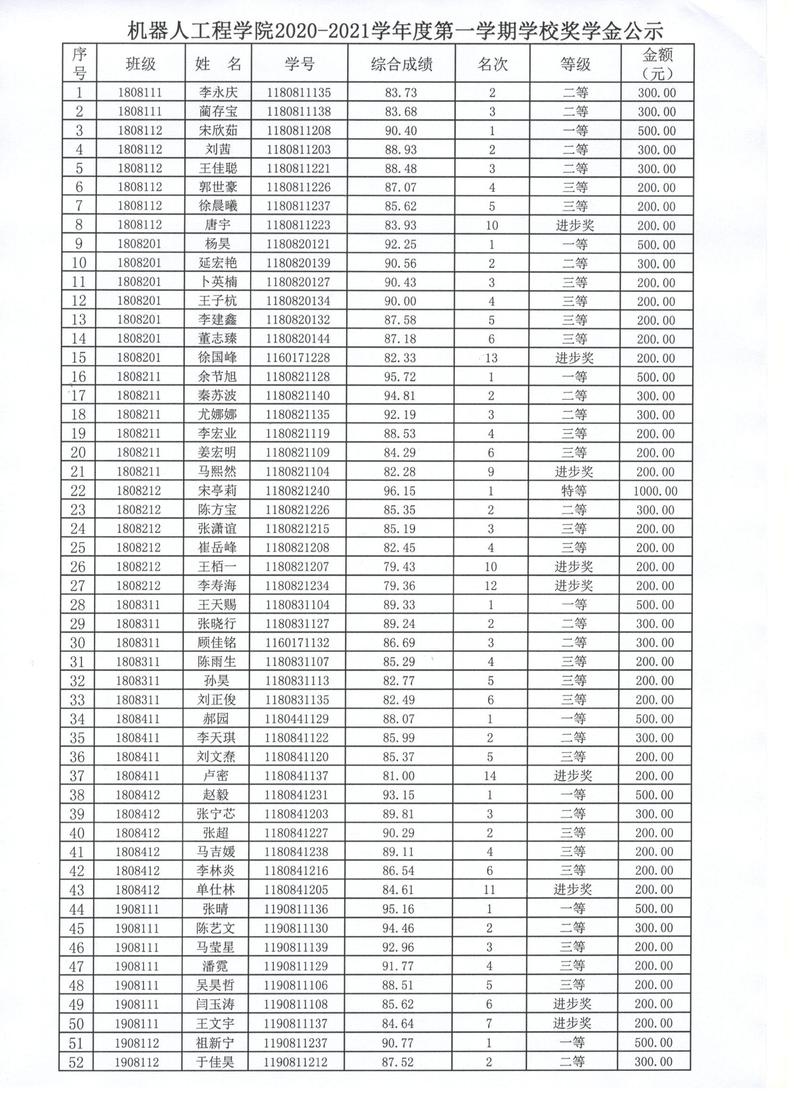 机器人工程学院2020-2021学年度第一学期学校奖学金公示