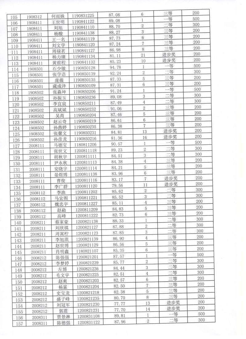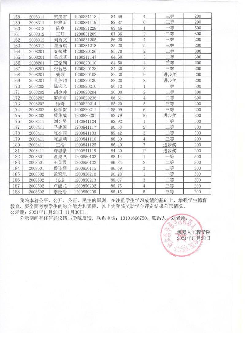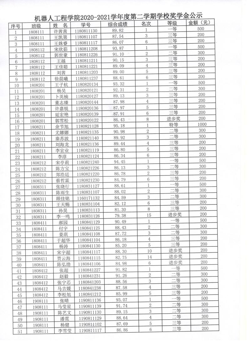 机器人工程学院2020-2021学年第二学期学校奖学金公示
