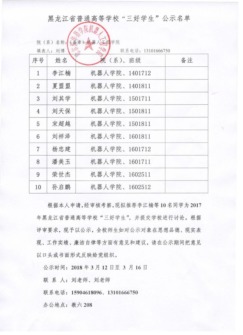 上一篇:机电与汽车工程学院关于黑龙江省普通高等学校“三好学生”名单公示