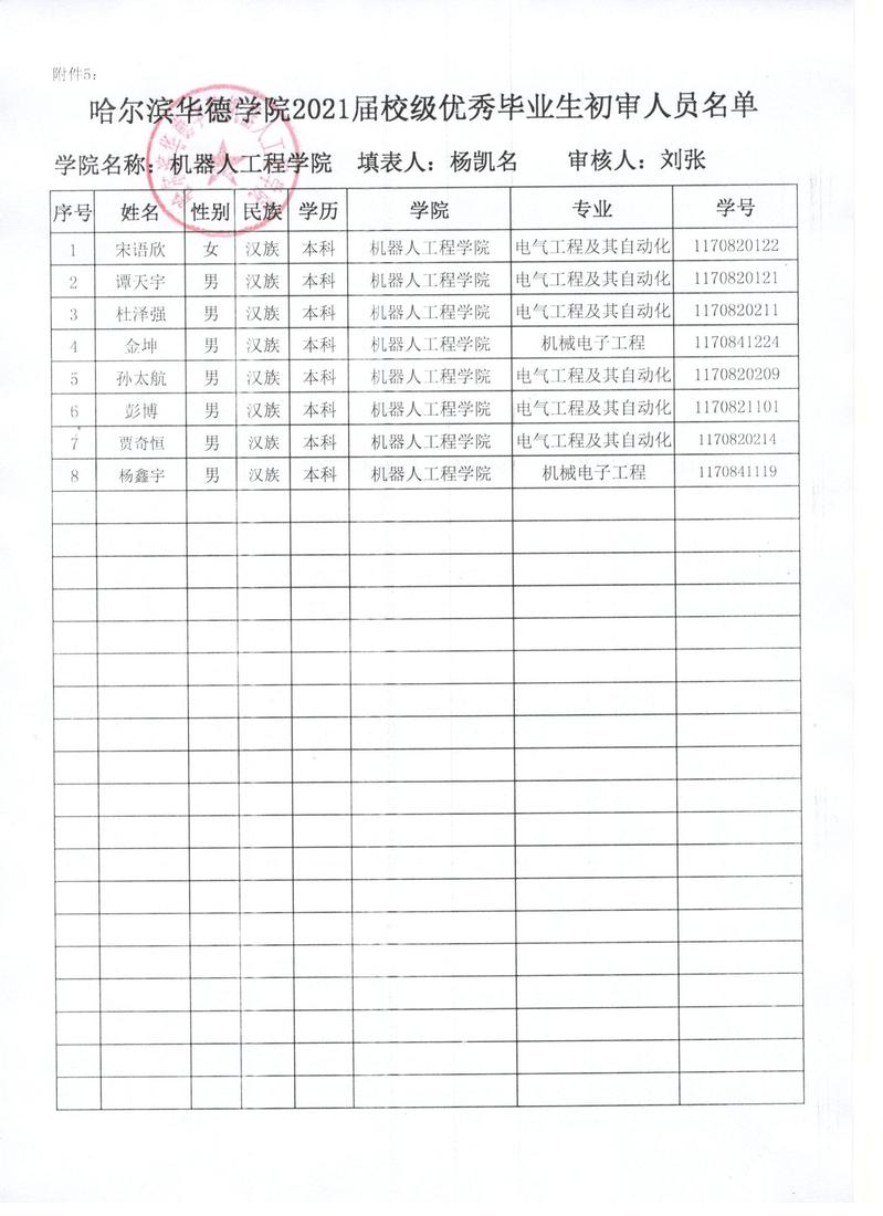 Beat365中文官方网站机器人工程学院2021届校级优秀毕业生初审人员名单